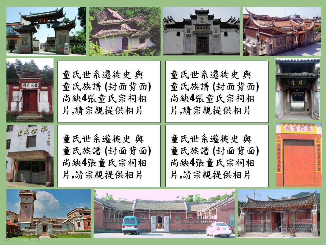 歡迎童氏宗親提供族譜相片檔 及 宗祠相片(請註宗祠位置)給我