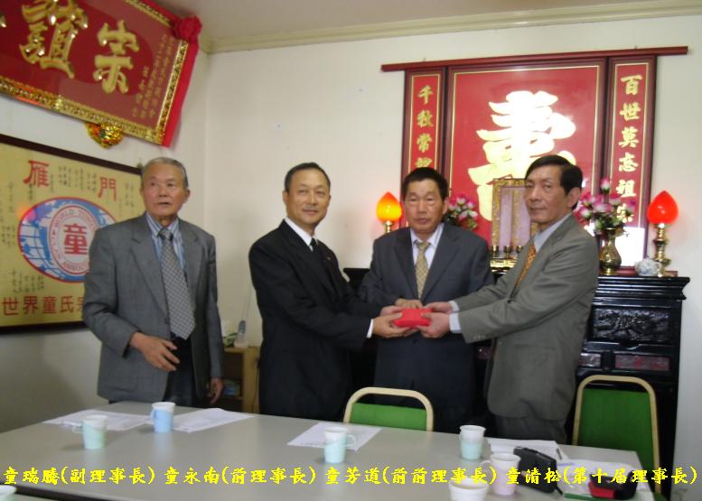 世界童氏宗親總會新舊理事長交接,交接日期:2011.4.10,交接地點:世界童氏宗親總會台北會館5F